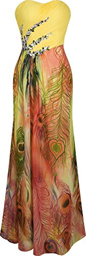 Angel-fashions Da Donna Senza Spalline Chiffon Pieghe Perlina Pavone Allacciare Vestito