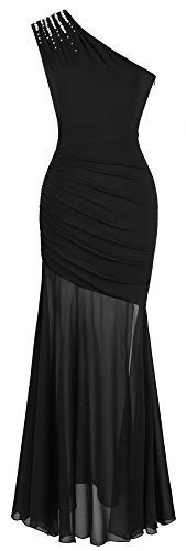 Angel-fashions Da Donna Una Spalla Perline Increspato Trasparente Abito da Cocktail XLarge