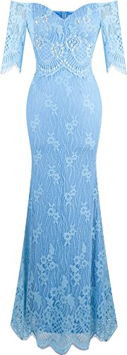 Angel-fashions Da Donna A Spalle Sweetheart Mezza Manica Vestito Floreale del Merletto della Sirena