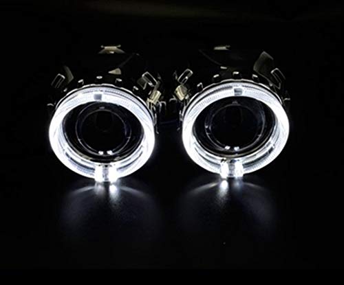 Fari Angel Eyes Auto,LED Angel Eyes 2,5 Pollici Bi Xenon Proiettore Lente con DRL LED Angel Eyes Shrots Automobile Assembly Kit for Il Modello di Automobile Kit for H1 H4 H7 Xenon Trasporto Libero (C