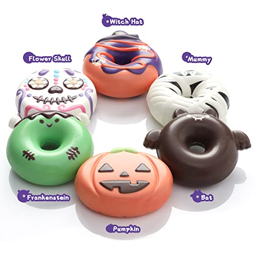 ANGELEMM Regali Halloween Bambini, Confezione da 6 Giocattoli Squishy a Ciambella Novità, Giocattolo Antistress a Lenta Aumento per Bambini Bomboniere per Feste di Halloween