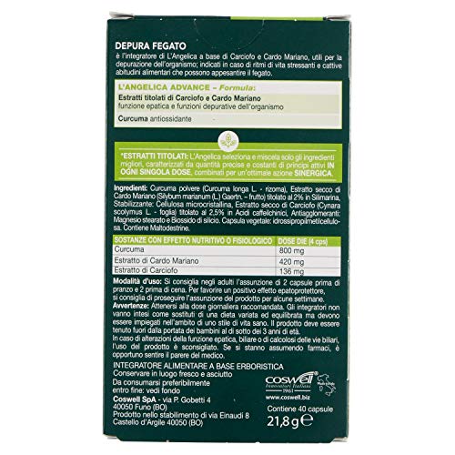 L'Angelica, Integratore Detox Fegato a base di Curcuma, Carciofo e Cardo Mariano, Effetto Depurativo Fegato, Senza Glutine, Senza Lattosio, Vegan, 40 Capsule (Confezione da 2)