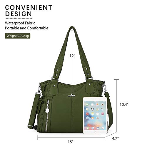 AngelKiss Borsa a tracolla da donna, multifunzione, in pelle PU vegana, con cerniera, 1193-2#158#41green, L