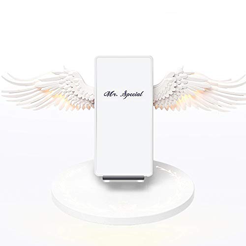HLW Angelo Ali Caricabatterie Senza Fili, Qi 10W Ricarica Veloce Basamento del Telefono Mobile, Angel Wings aprono e Si chiudono automaticamente, White Wings luci