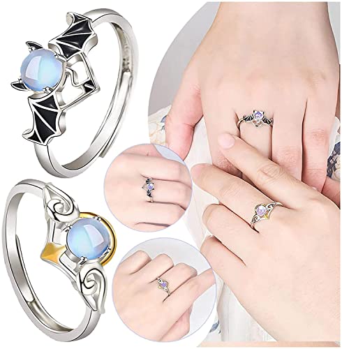 Angelo e diavolo alla moda di forma rotonda Pietre di luna sintetiche Anello per coppie Anello femminile Gioielli regalo Nettes Design