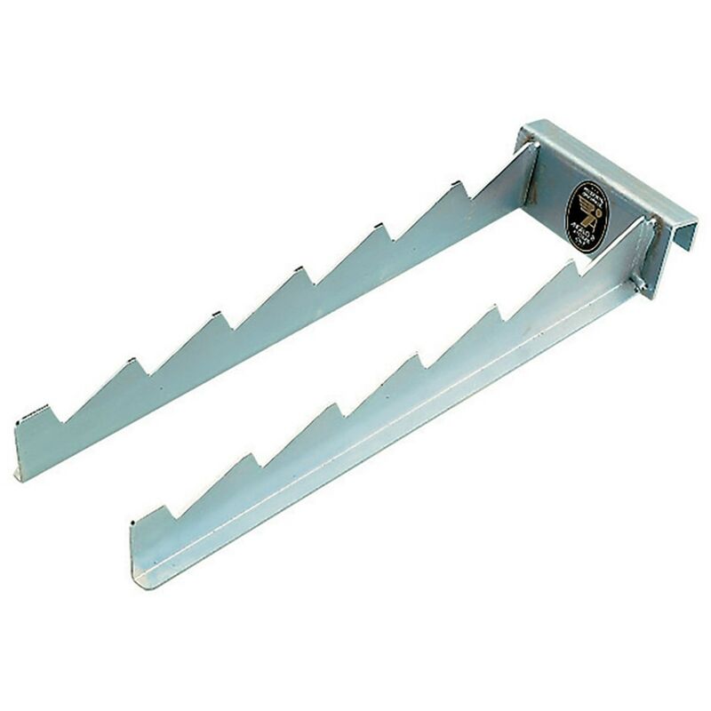 Applicato alla barra forata tramite l'apposita scanalatura, è indicato per l'alloggiamento su espositori da terra di attrezzi quali badili, vanghe, forche, rastrelli.. Prezzo inteso per: 1 PZ