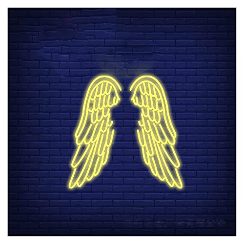 Ali di angelo personalizzato Segno al neon, luci al neon in acrilico trasparente fatte a mano per camera per bambini, soggiorno, cucina o negozio decorazioni da parete (Color: Yellow 60x60cm)