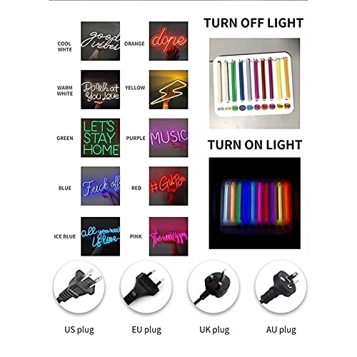 ♥ Segni acrilici Facile da usare, adatto per 100V-240V alla maggior parte dei paesi, con un dimmer, dopo il collegato, premere il tasto di accensione per illuminare il segno al neon, premere il tasto freccia per regolare la luminosità. Solo uso interno.