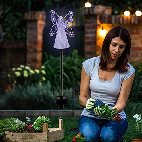 Angelo - Luci solari da giardino per esterni, motivo: fata dei fiori, motivo angelo, paesaggio, illuminazione web, luce di protezione solare per esterni, ideale come regalo commemorativo