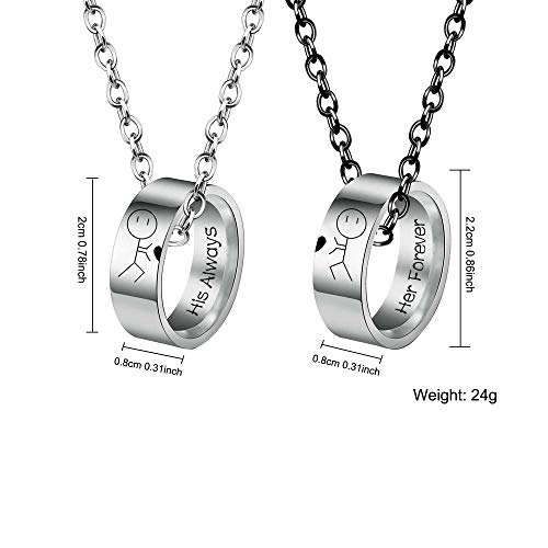 Angelra 2pcs Coppia Collane da Donna Uomo His Always Her Forever Squillare Ciondolo con Incisione Amore Regali di Valentine's Day Compleanno Natale