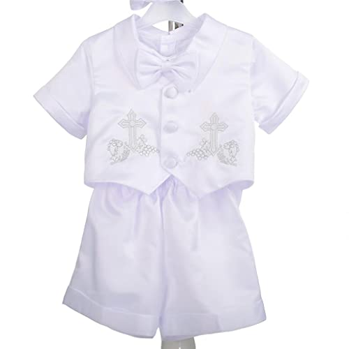 Lito Angels - Abito da Battesimo per Bimbo, Completo Bianco 4 Pezzi Set (Gilet, Camicia, Pantaloni, Papillon e Cappello), Taglia 9-12 Mesi, Stile A, Manica Corta