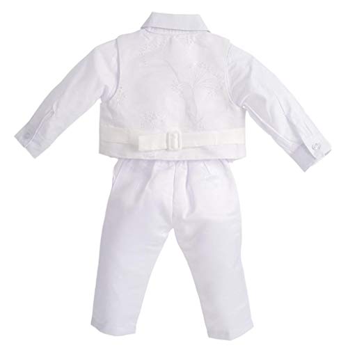 Lito Angels - Completo Abito Bianco da Battesimo per Bimbo, 5 Pezzi Set (Gilet, Camicia, Pantaloni, Papillon e Cappello), Taglia 9-12 Mesi, Manica Lunga, Floreale (Etichetta in Tessuto 0M)