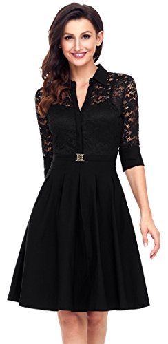 Angerella Annata Pizzo 3/4 Manica Da Donna Scollo a V profondo Vita Stretta Abito da Sera Elegante
