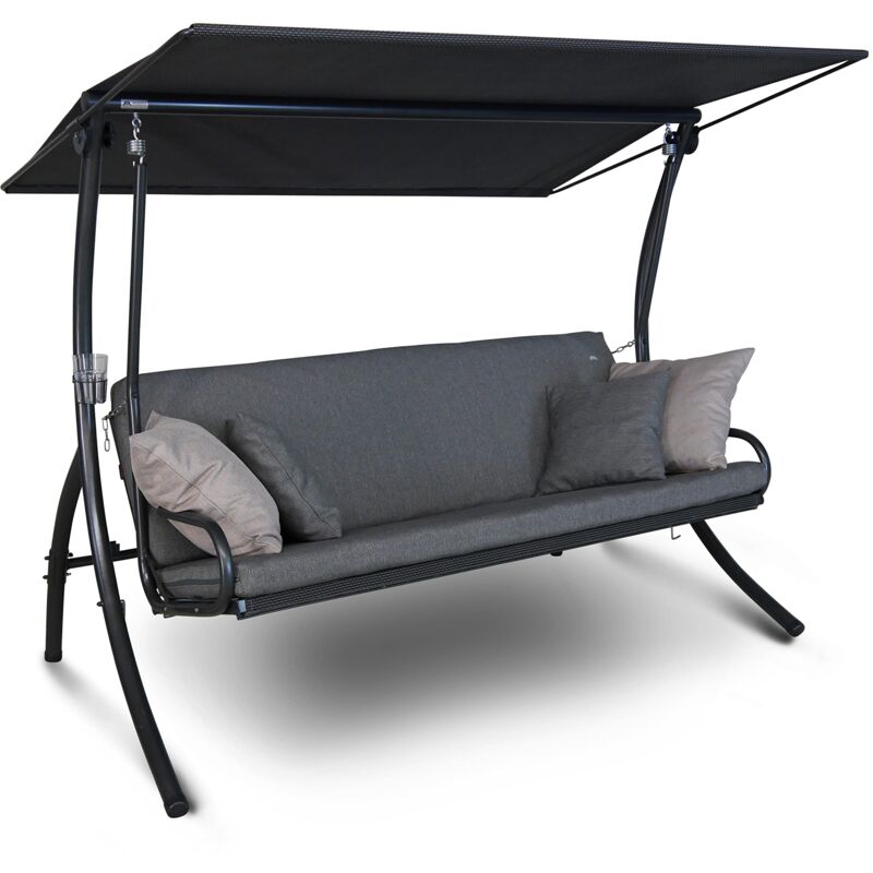 L'altalena Angerer Elegance Smart Stone offre un eccellente comfort grazie al rivestimento del sedile in tessuto flessibile Primetex. Il telaio è realizzato in acciaio zincato, che è stato rifinito con un rivestimento a polvere antigraffio in colore grigio ferro per una protezione ottimale dalla corrosione. Molte parti sono già premontate in fabbrica, quindi la struttura del dondolo Hollywood è semplice. Il cuscino è composto da un cuscino da seduta e uno schienale e due cuscini per divano piccoli e due grandi. Tutti gli elementi del dondolo sono dotati di una cerniera e quindi sfoderabili e lavabili. I rivestimenti sono realizzati in un tessuto di poliestere particolarmente morbido e di alta qualità. Il parasole dell'altalena Elegance Smart Hollywood è realizzato in tessuto Primetex resistente alle intemperie e lavabile. Il tetto è regolabile in inclinazione e può essere spostato in avanti e indietro per ottenere una protezione solare ottimale. Inoltre è regolabile l'angolo di