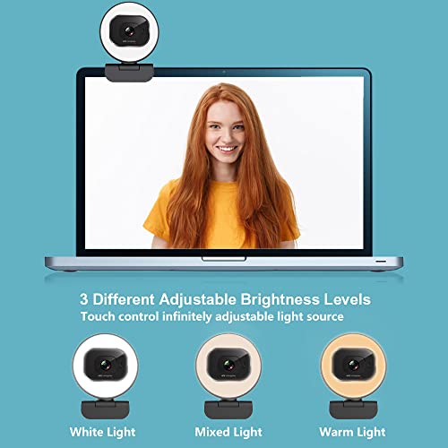 Luce ad anello a tre colori e luminosità regolabile: la luce ad anello integrata ha tre modalità: luce bianca, luce fredda e luce calda, che possono essere regolate e commutate liberamente in base a diversi ambienti e stati d'animo. Toccare il pulsante per regolare, senza passaggi noiosi, regolare continuamente la luminosità, riempire automaticamente la luce in base all'ambiente di chat, rendere le chat più calde e farti presentare lo stato migliore in ogni situazione.