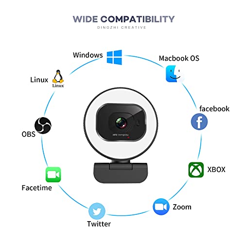 Angetube 1080P 60FPS Webcam con Luce Anulare, Microfoni con Riduzione del Rumore Integrati e Copertura Privacy, Messa a fuoco automatica e Plug and Play Webcam PC per Laptop Zoom Facetime Team Skype