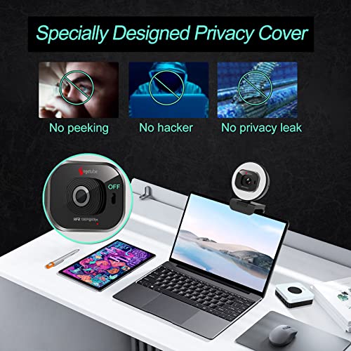 Angetube Full HD 1080P Webcam 60FPS Videochiamate Anello Luce Streaming Web Cam con microfono e copertura privacy, Auto-Focus & Plug and Play USB Web Camera per PC Laptop Zoom FaceTime Teams OBS Skype