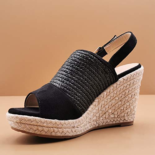 ANGKORLY - Scarpe Moda Scarpe Mulo Espadrillas Boemia Elegante Zeppa Donna camoscio Maglia Intrecciato Tacco Zeppa 9 CM - Nero 33 FG20 T 38