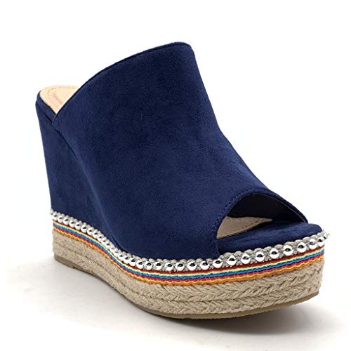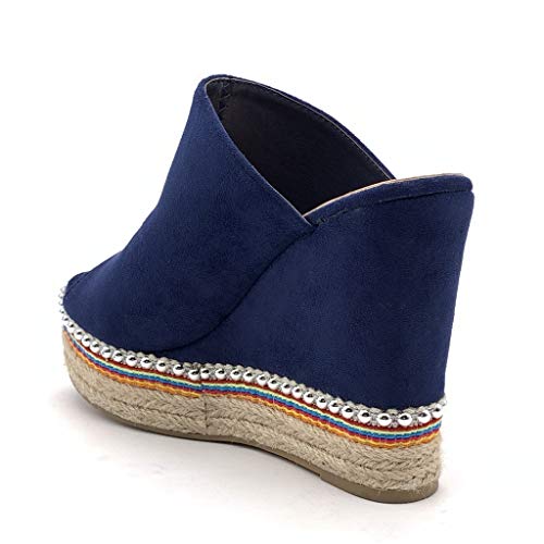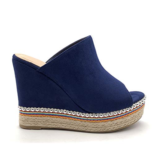 ANGKORLY - Scarpe Moda Espadrillas Sandali Vintage/Retro Comfortable Zeppa Donna con Paglia Perla Tacco Zeppa Piattaforma 11.5 CM - Blu 4 88-285 T 40