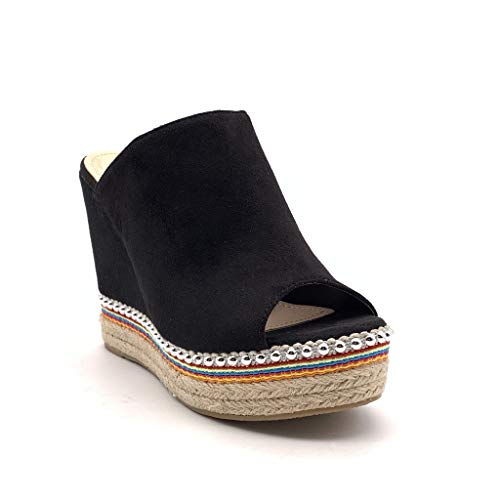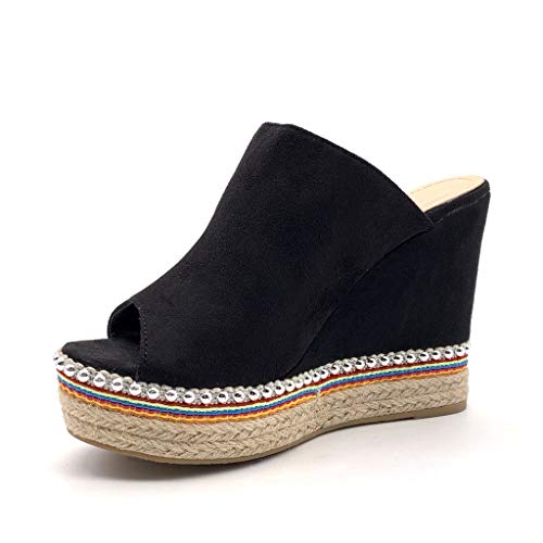 ANGKORLY - Scarpe Moda Espadrillas Sandali Vintage/Retro Comfortable Zeppa Donna con Paglia Perla Tacco Zeppa Piattaforma 11.5 CM - Nero 5 88-285 T 38