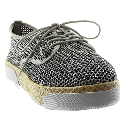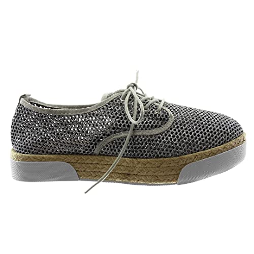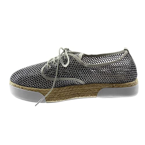 ANGKORLY - Scarpe Moda Espadrillas Scarpa Derby Suola di Sneaker Zeppa Donna Perforato Glitter Cordas Tacco Piatto 3 CM - Argento 2 LTP157A-1 T 36