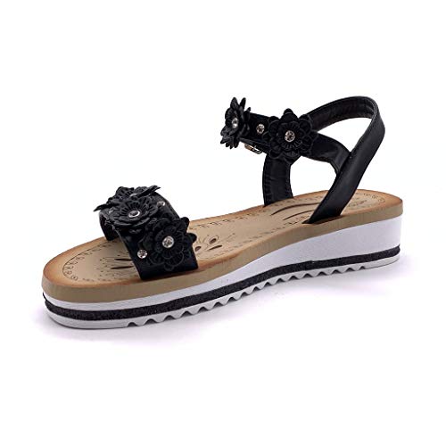 ANGKORLY - Scarpe Moda Sandali con Cinturino alla Caviglia Comfortable Comodo maneggevole Donna Fiori Strass Glitter Tacco Zeppa 4 CM - Nero JN303 T 37
