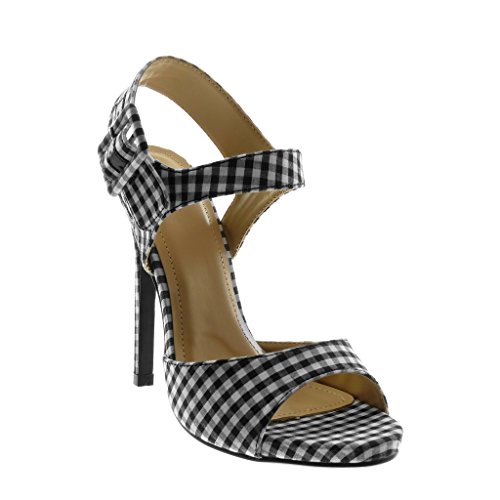 ANGKORLY - Scarpe Moda Sandali Scarpe Decollete con Cinturino alla Caviglia Stiletto Donna a Scacchi Tanga Fibbia Tacco Stiletto Alto 13 CM - Nero 7513-W14 T 39