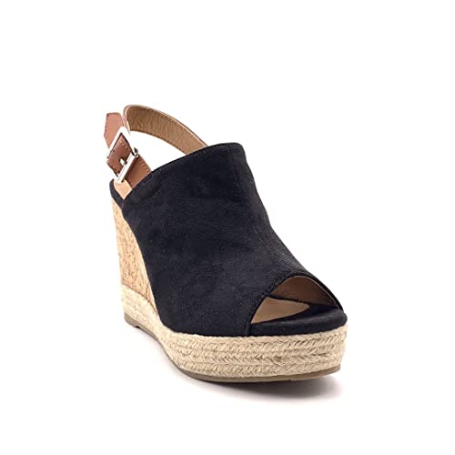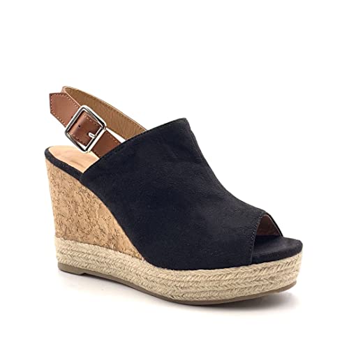 ANGKORLY - Scarpe Moda Sandali Scarpe Mulo Folk/Etnico Boemia Tacchi Alti Donna con Paglia Intrecciato Sughero Tacco Zeppa Piattaforma 12 CM - Nero 31 W20-25 T 40