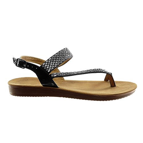 ANGKORLY - Scarpe Moda Sandali Infradito con Cinturino alla Caviglia Cinturino Donna Strass Verniciato Tanga Tacco Zeppa 2 CM - Nero RC-40 T 40