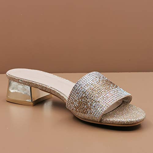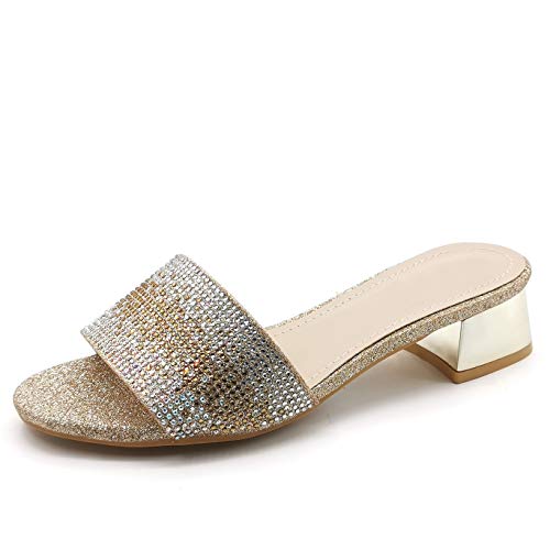 ANGKORLY - Scarpe Moda Scarpe Mulo Sandali da Sera Matrimonio Cerimonia Elegante Donna Strass Diamante Strass Glitter Glitter Tacco Blocco 3.5 CM - Oro R-255 T 39