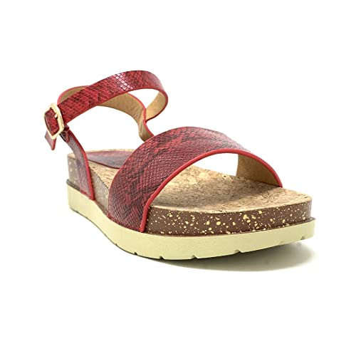ANGKORLY - Scarpe Moda Sandali Piatto Spiaggia Casual Donna Effetto Serpente Pitone Sughero Fibbia Tacco Zeppa 4 CM - Rosso 7 1008 T 38