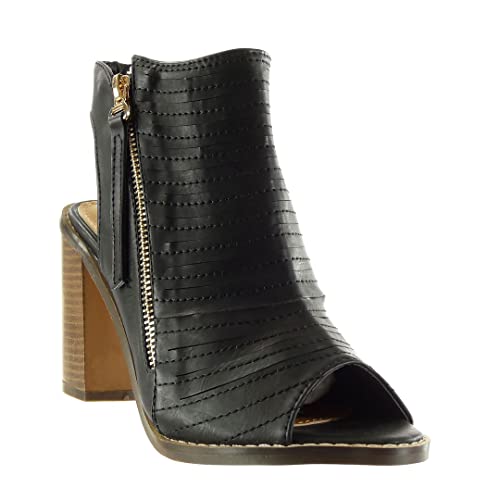 Angkorly - Scarpe Donna Sandali Stivaletti - Peep-Toe - Aperti - Stivaletti bassi - Multi Flangia - Cuciture finite - Cerniera Tacco Blocco Tacco Alto 9,5 cm - Nero 12 M107 T 39