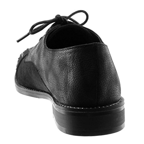 ANGKORLY - Scarpe Moda Scarpa Derby bi-Materiale Metallico Donna Strass Borchiati Lucide Tacco a Blocco 2.5 CM - Nero 19-5 T 37