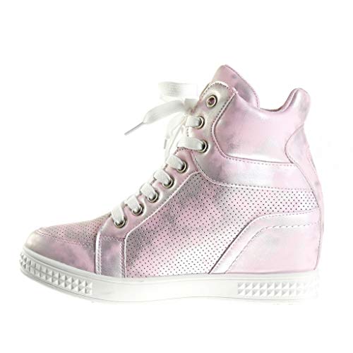 ANGKORLY - Scarpe Moda Scarpa - Sneakers Cuneo Alti Zeppa Effetto invechiato Donna Perforato Lucide Tacco Zeppa Piattaforma 6 CM - Rosa 4 ON001 T 36