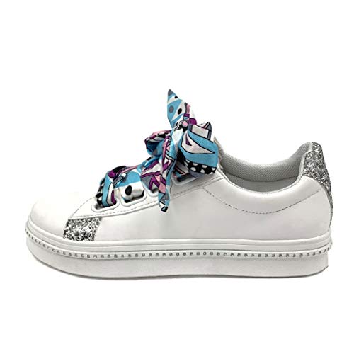 ANGKORLY - Scarpe Moda Sneaker Tennis Comfortable BCBG Donna Lacci in Raso Perforato Tacco Tacco Piatto 2 CM - Argento HX-033 T 41