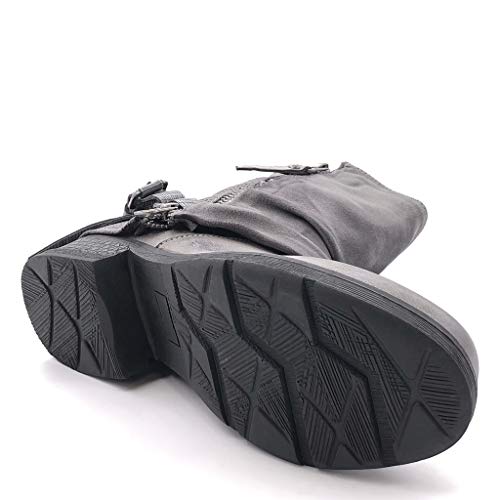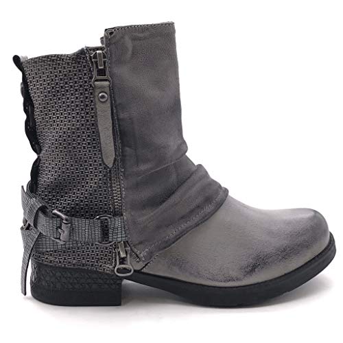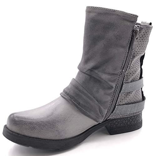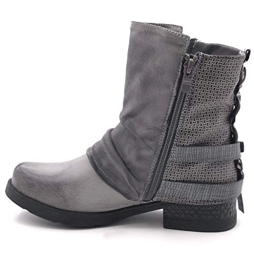 ANGKORLY - Scarpe Moda Stivaletti Scarponcini Biker bi-Materiale Classic Donna Tanga Intrecciato Zip Tacco a Blocco 3.5 CM Foderato di Pelliccia - Grigio F2833 T 36
