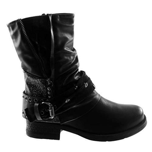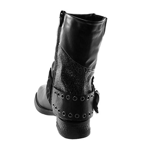 ANGKORLY - Scarpe Moda Stivaletti Scarponcini Biker bi-Materiale Classic Donna Borchiati Tanga Zip Tacco a Blocco 3.5 CM Foderato di Pelliccia - Nero F2865 T 36