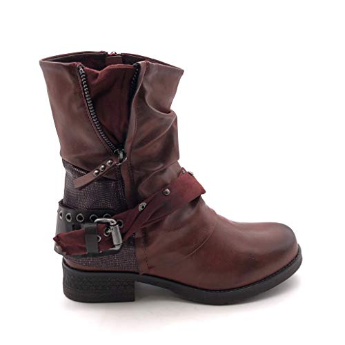 ANGKORLY - Scarpe Moda Stivaletti Scarponcini Biker bi-Materiale Classic Donna Borchiati Tanga Zip Tacco a Blocco 3.5 CM Foderato di Pelliccia