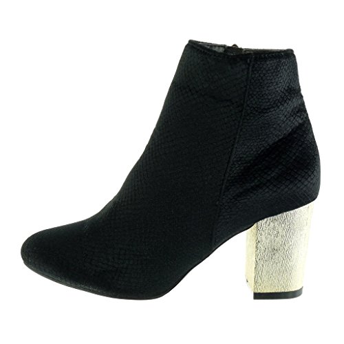 ANGKORLY - Scarpe da Moda Stivaletti - Scarponcini Biker Cavalier Donna Pelle di Serpente d'oro Tacco a Blocco Tacco Alto 7.5 CM - Nero LS0204 T 40