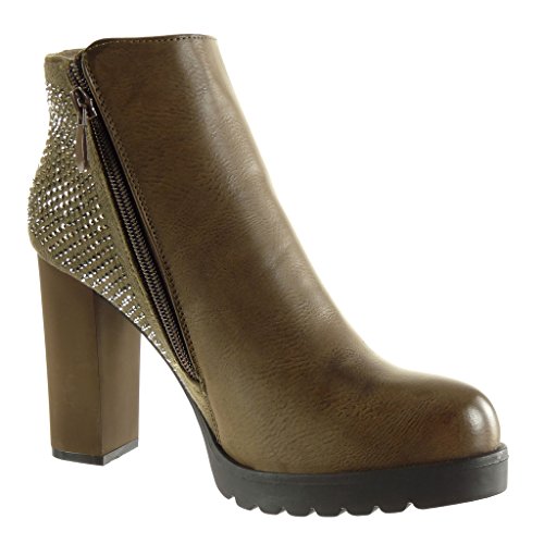 ANGKORLY - Scarpe da Moda Stivaletti - Scarponcini Biker Cavalier Donna Strass Zip Tacco a Blocco Tacco Alto 10 CM