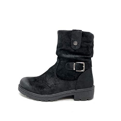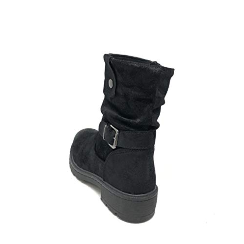 ANGKORLY - Scarpe Moda Stivaletti Scarponcini Biker Cavalier Roccia Donna Tanga Fibbia Lucide Tacco a Blocco 3.5 CM Foderato di Pelliccia - Nero M-11 T 37