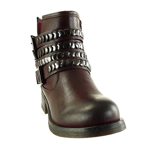 ANGKORLY - Scarpe da Moda Stivaletti - Scarponcini Biker Cavalier Stile Vintage Donna Borchiati Tanga Multi-Briglia Tacco a Blocco Tacco Alto 3.5 CM - Soletta Foderato di Pelliccia - Bordo F1608 T 36
