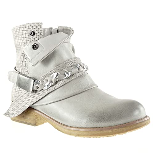 ANGKORLY - Scarpe Moda Stivaletti Scarponcini Biker Cavaliere Effetto invechiato Donna Intrecciato Fibbia Tanga Tacco Blocco 3 CM - Grigio 10 F1059 T 38