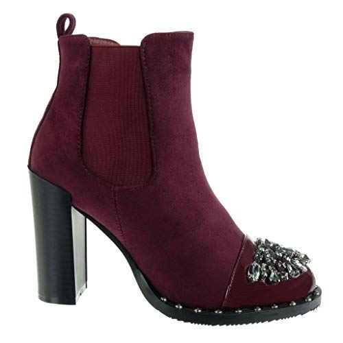ANGKORLY - Scarpe Moda Stivaletti Scarponcini Chelsea Boots Cavaliere Biker Donna Gioielli Strass Diamante Borchiati Tacco Blocco Alto 10 CM - Bordo 108-5 T 39