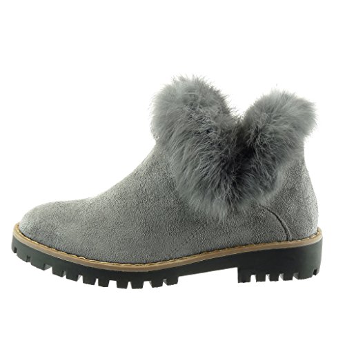 ANGKORLY - Scarpe da Moda Stivaletti - Scarponcini Chelsea Boots Donna Pelliccia Finitura Cuciture Impunture Tacco a Blocco Tacco Alto 3.5 CM - Grigio TS8228 T 38