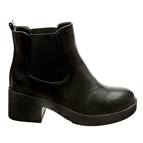 ANGKORLY - Scarpe Moda Stivaletti Scarponcini Chelsea Boots Zeppe Donna Tacco a Blocco Alto 5 CM CM - Nero BS013 T 37
