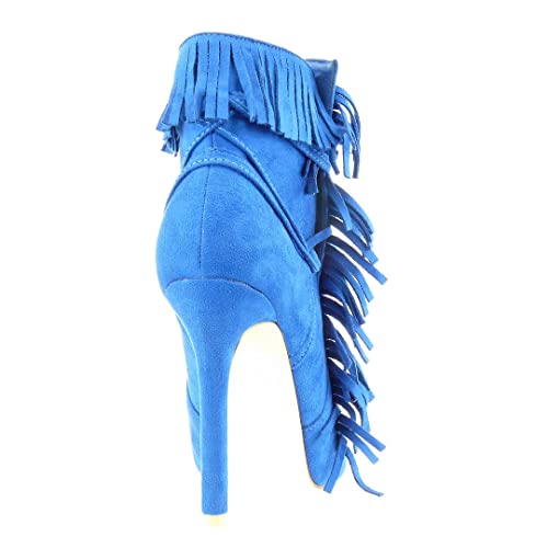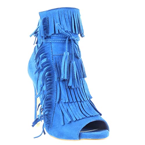 ANGKORLY - Scarpe Moda Stivaletti Scarponcini Decollete Stiletto Aperto Donna Frange PON PON Merletto Tacco Stiletto Alto 11 CM - Blu 2 C-242 T 41