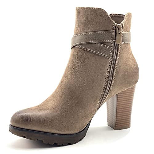 ANGKORLY - Scarpe Moda Stivaletti Scarponcini Stivali - Scarponi Biker - Moto Glam Rock Chelsea Boots Donna Effetto Pitone Pitone Multi-Briglia Tacco Blocco Alto 8.5 CM - Khaki 6 F3125 T 40