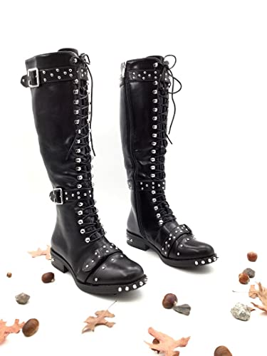ANGKORLY - Scarpe Moda Stivali - Scarponi Anfibi Biker Donna Borchiati Fibbia Merletto Tacco Blocco 3.5 CM - Nero B7698 T 36