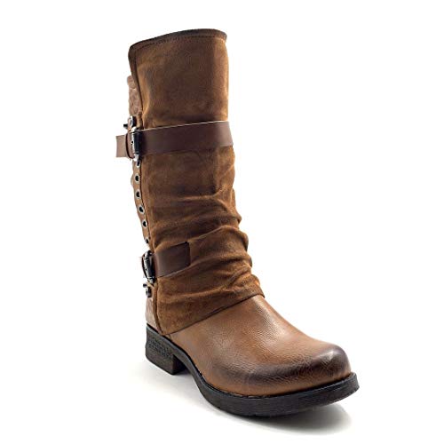 ANGKORLY - Scarpe Moda Stivali - Scarponi Biker Biker Roccia Donna Effetto Pitone Pitone Tanga Stampa Animalier Tacco a Blocco 4 CM